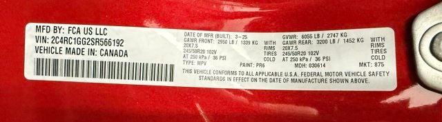 - Front Tire Size: P245/50HR20